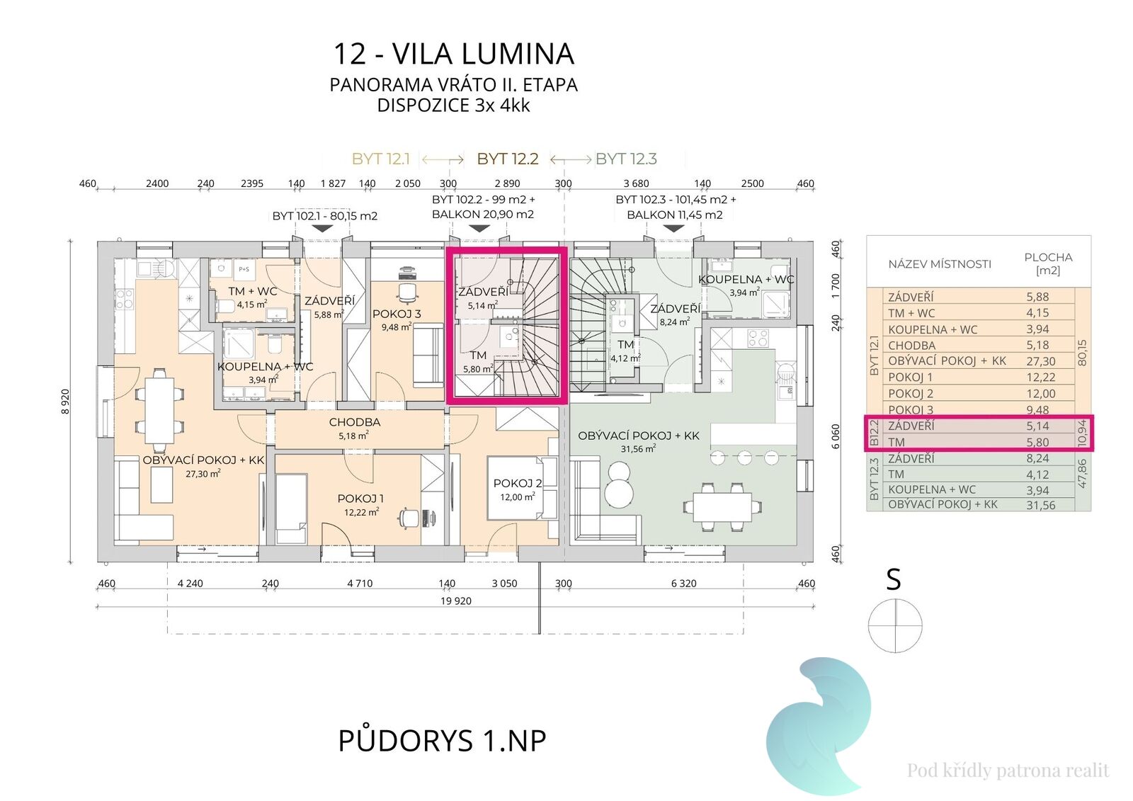 4+kk (99 m²) | balkón 20,9 m² | 2 parkovací místa | zahradní domek | Vráto u Českých Budějovic