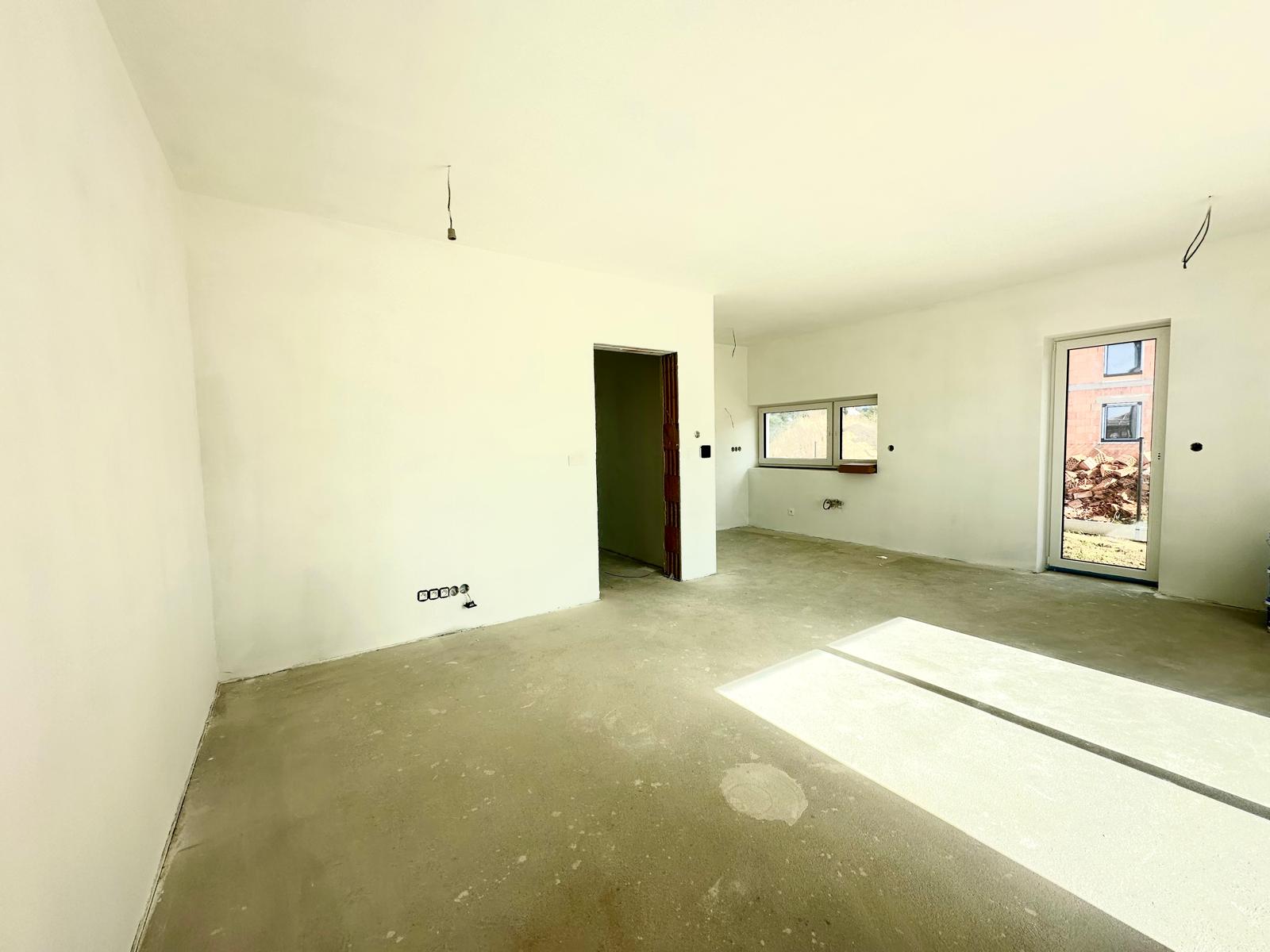 Z obývacího pokoje můžete vyjít na terasu se zahradou (125 m²) – ideální místo pro grilování, relax i ranní kávu.