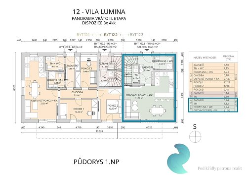 Byt o dispozici 4+kk (101,45 m²) je součástí rezidenčního projektu PANORAMA VRÁTO, který přináší klidné a komfortní bydlení v oblíbené lokalitě Vráto.