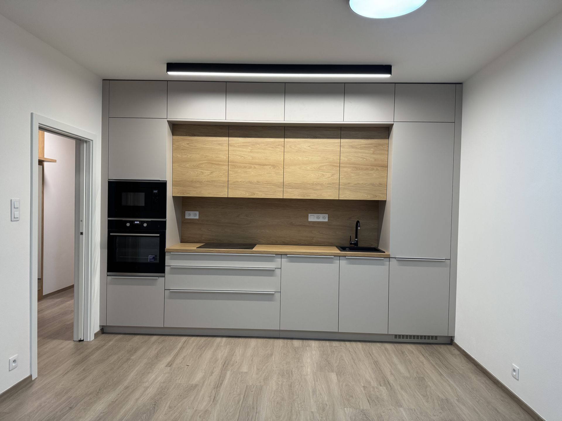 Samostatná ložnice o výměře přibližně (13 m²) nabízí dostatek prostoru pro manželskou postel i další nábytek a vytváří klidné a komfortní zázemí pro každodenní odpočinek. Obývací část o výměře (23,32 m²) tvoří otevřený prostor propojený s moderní kuchyní vybavenou vestavnými spotřebiči. Z obývacího pokoje je přímý vstup na balkon, který nabízí příjemné místo pro odpočinek či posezení.